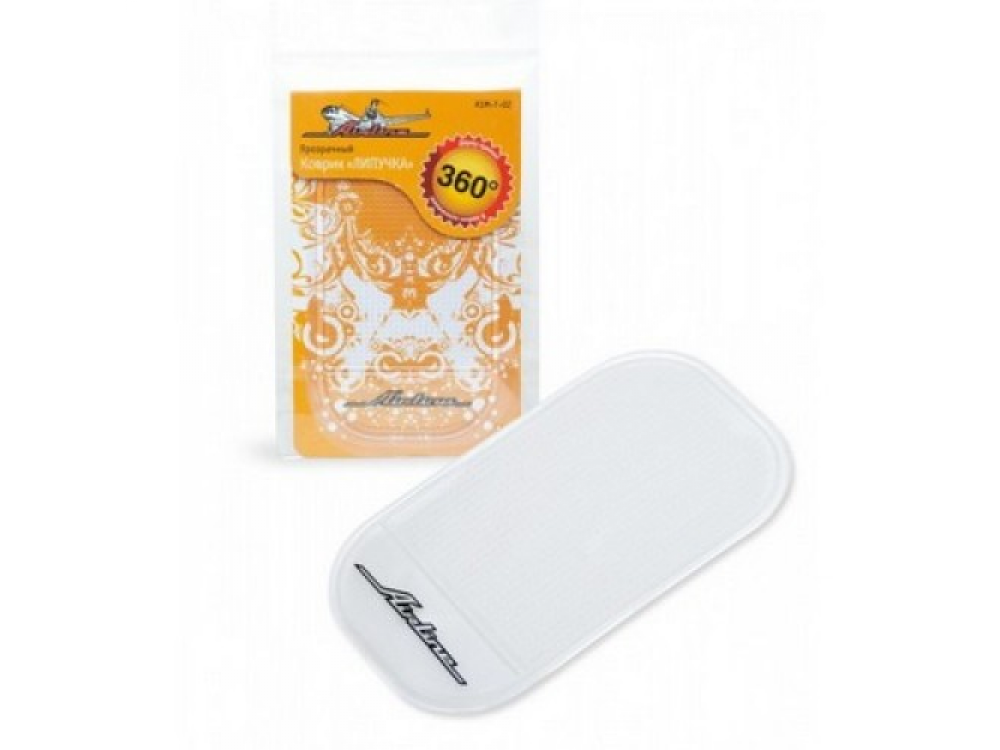 Коврик липучка из прозрачного полиуретана — это стильный аксессуар для автомобильного салона, а также удобное средство для фиксации различных предметов малого размера на панели авто. Размер изделия составляет 92х145мм. Липучка, с помощью которой прикрепляется изделие, позволяет устанавливать его в любом удобном для водителя или пассажира месте.
