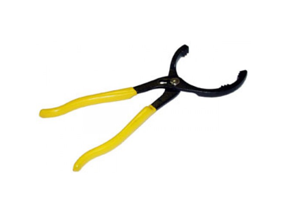 Съемник корпусных масляных фильтров, изготовленный в виде переставных щипцов, что позволяет использовать инструмент в ограниченном рабочем пространстве без лишних манипуляций. Длина инструмента составляет 300 мм, диапазон диаметров обслуживаемых деталей 60 -115 мм.