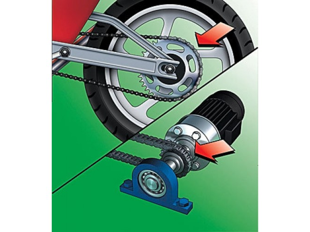 Цепи следует проверять и смазывать через строго определенный интервал времени. В процессе проверки особое внимание следует уделять натягу цепи. Провис должен быть равен 15–20 мм между верхним и нижним положением цепи, когда звездочка не загружена. Сильный перетяг и провис приводят к быстрому износу цепи и зубьев звездочек.